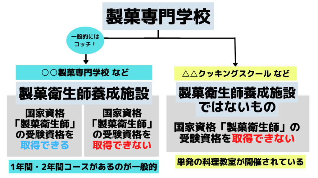 逆に上記の授業を受ける必要がない場合は、「製菓衛生師」の受験資格を得ることができない学校であるという可能性が高いので注意が必要です。