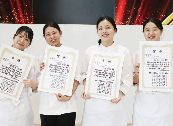 神戸で唯一、調理・製菓の両方を学べる恵まれた学習環境。学習成果をさまざまなコンクールで発揮し、毎年多くの受賞者を生み出しています。
