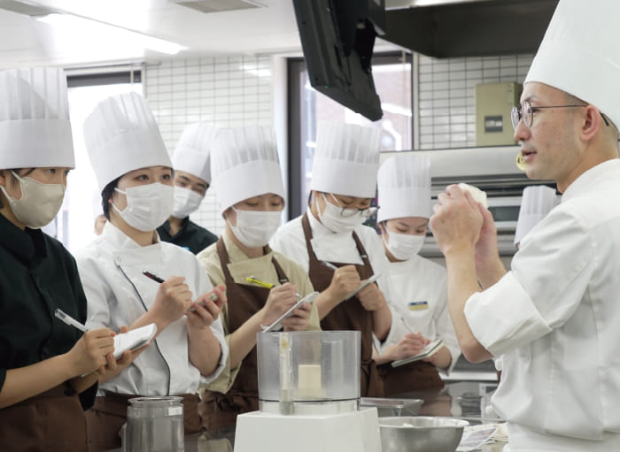 本校の先生の多くは卒業生です。本校で学び、お菓子づくりや料理がますます好きになったから、その感動や喜びを後輩たちにも伝えたい、と指導者の道に。アットホームな雰囲気で学べる理由です。