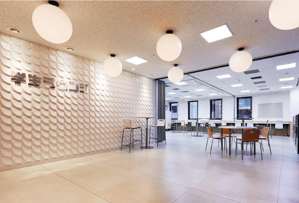 勉強したり、食事をしたり、おしゃべりしたり、学生たちが自由に使えるスペース。
