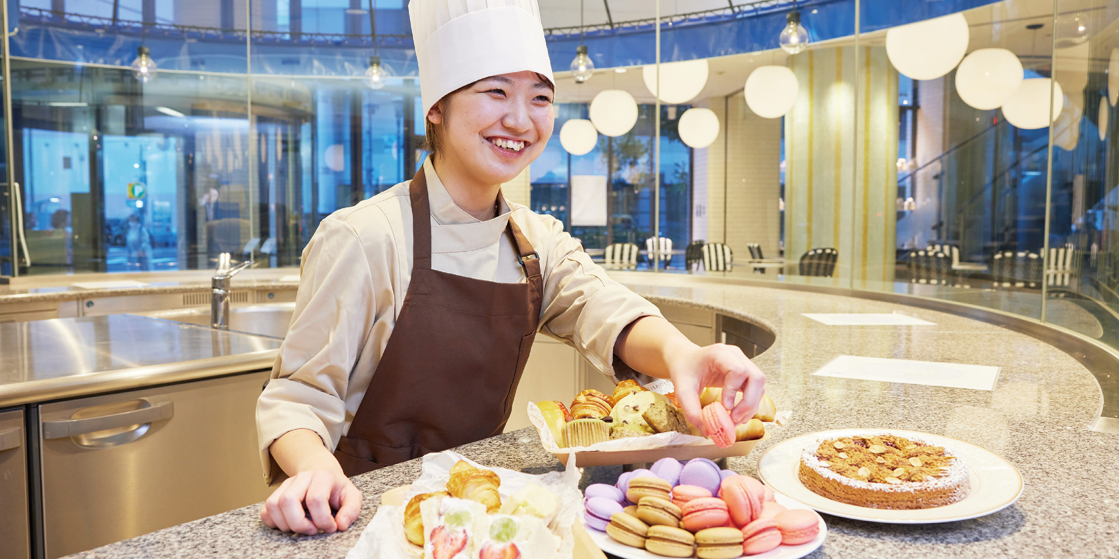 カフェ、ベーカリーショップ、ホテルやウエディング関連の幅広い分野に対応できるスキルと運営の基本などを総合的に学習。 独⾃メニューの開発やお店のプロデュースもできる⼈材を養成します。