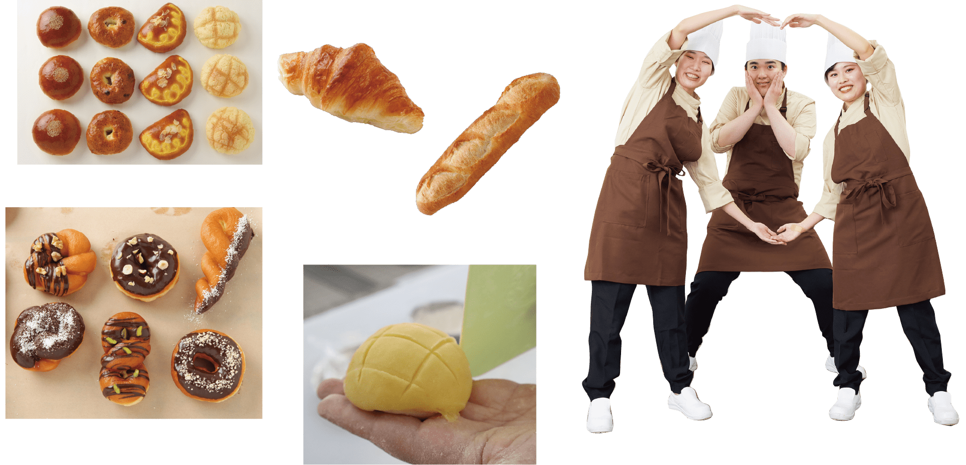 生地づくりから焼成までを学習。欧米の食事パン、日本の調理パン、菓子パンについての知識と技術を幅広く習得します。
